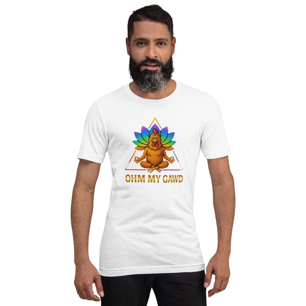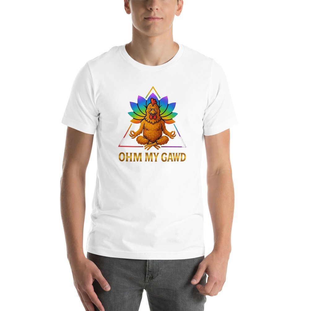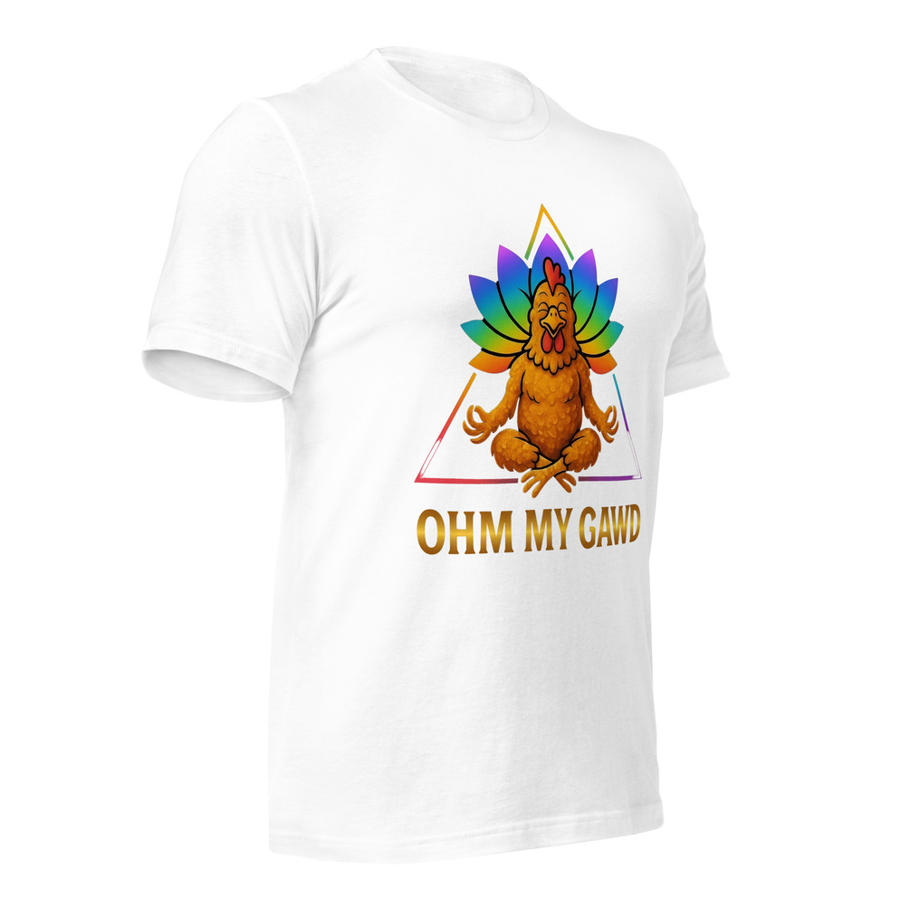 - Bold OHM MY GAWD™ chest print — channel the frequency, broadcast the sauce